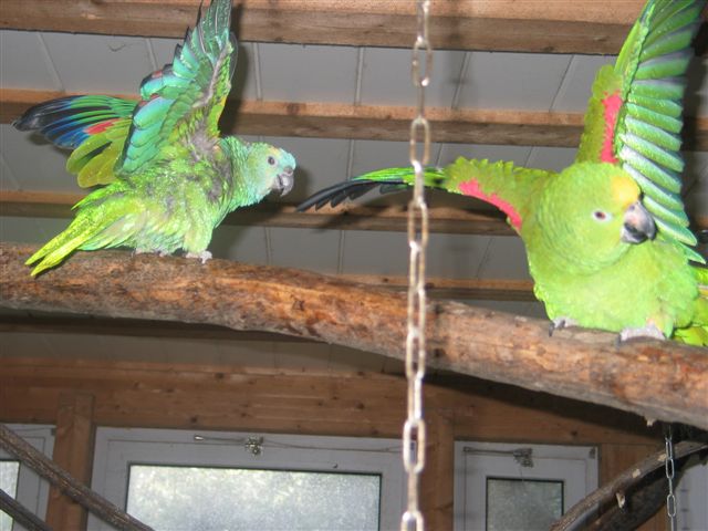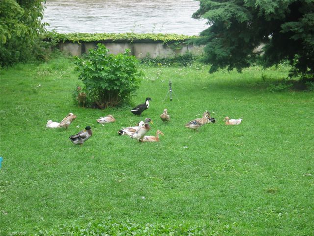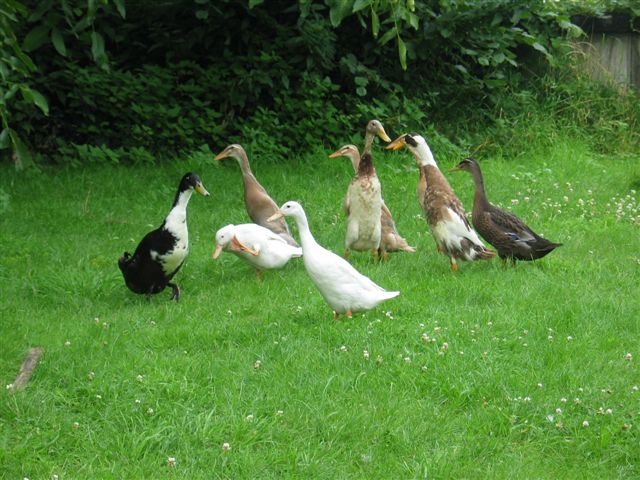 Papageien, sowie die Laufenten und Gänse im Garten.